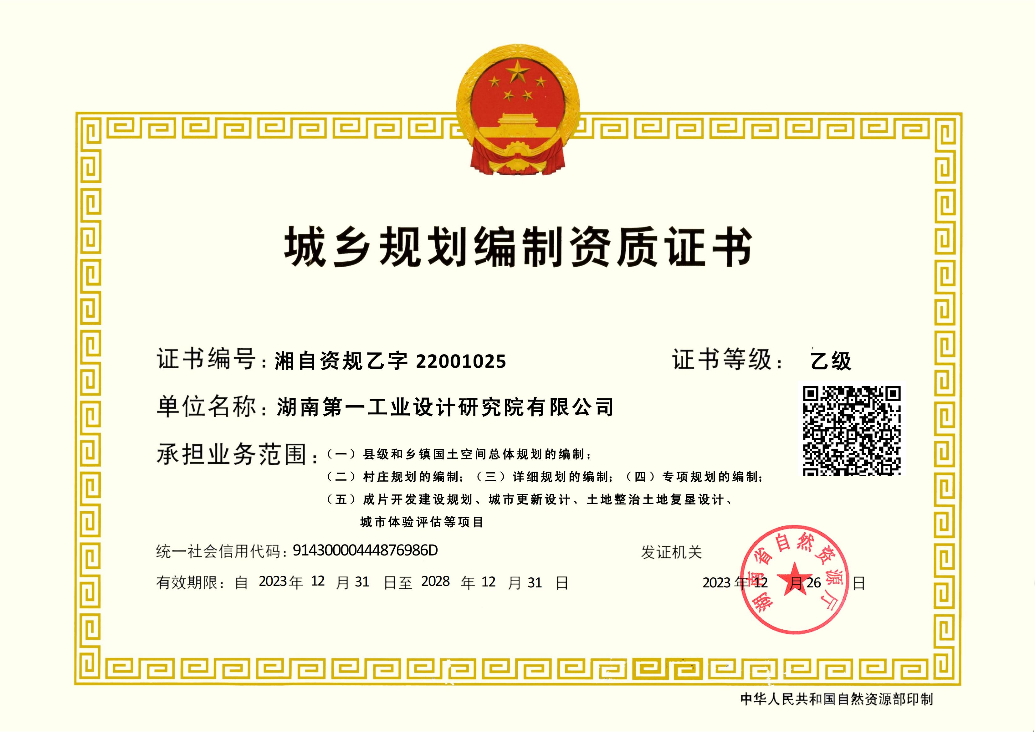 城鄉(xiāng)規(guī)劃編制資質(zhì)證書(shū)